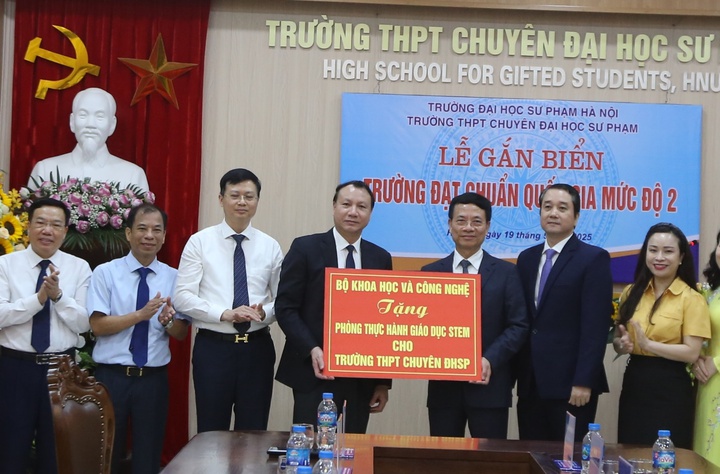 Bộ trưởng Nguyễn Mạnh Hùng trao tặng phòng thực hành giáo dục STEM cho Trường THPT chuyên Đại học Sư phạm