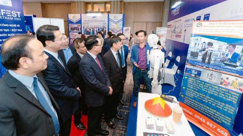 Các đại biểu đi tham quan các gian hàng triển lãm tại Techfest Việt Nam 2024.