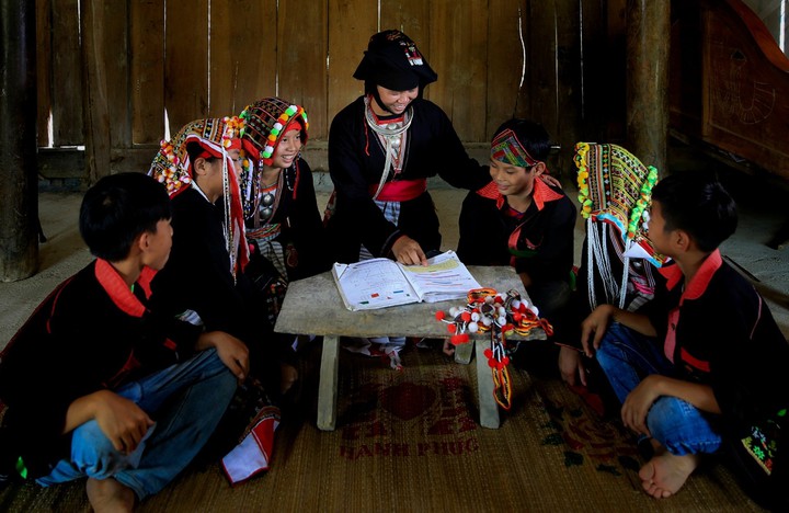 Bà con dân tộc Dao Quần Chẹt ở Phú Thọ cùng nhau học, truyền nghề thêu thổ cẩm truyền thống.